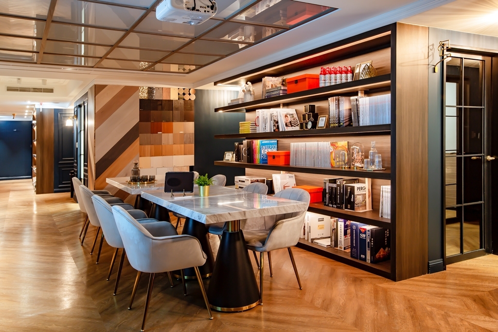 | 以室內設計商務中心為核心,展示多樣室內裝修樣品、DM與素材,提供專業交流平台。