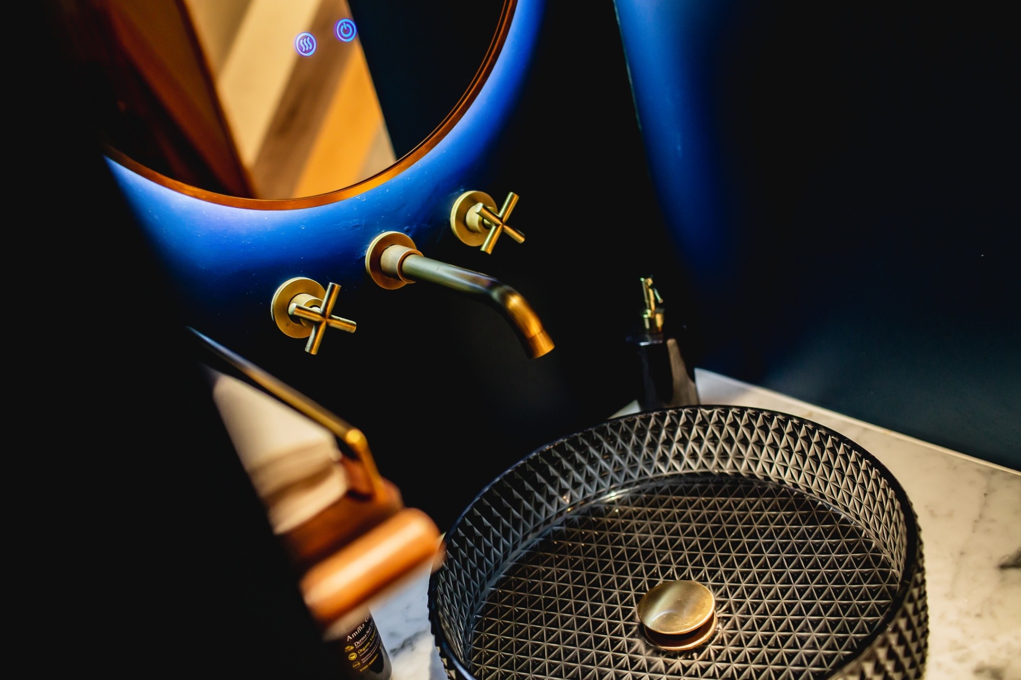 | 金屬細節:古銅金燈具與把手,細節點綴,提升奢華質感。